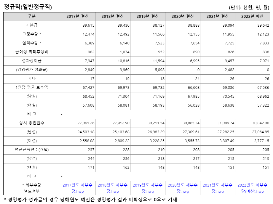 2022년 기준, 한국철도공사(코레일)의 평균연봉은 남성 6,896만원이며, 여성 5,732만원이다.. 근무 형태(일근/교대)에 따라 다소 차이가 있을 수 있으며, 성과급에 따라 달라짐을 연도별 평균 보수액을 통해 알 수 있다.