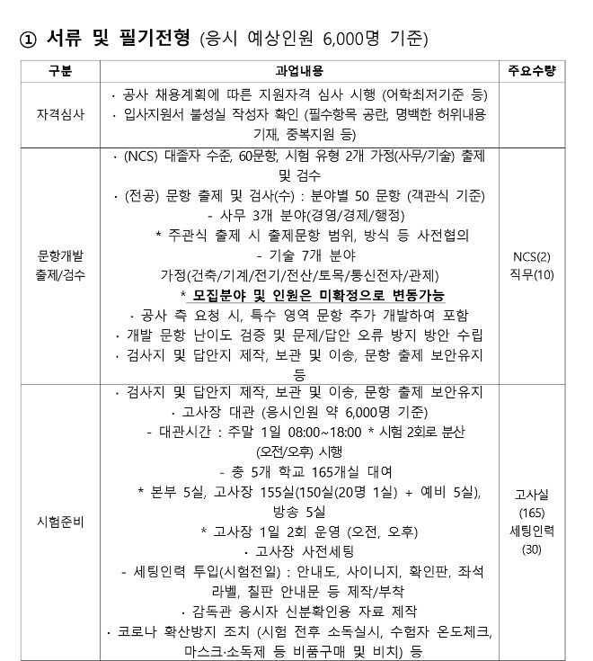 과업지시서에 따르면 '논술인성검사' 전형으로 일반논술, 영어에세이 작성이 추가된다. 즉, 채용전형의 복잡성이 증가된다는 것이다.