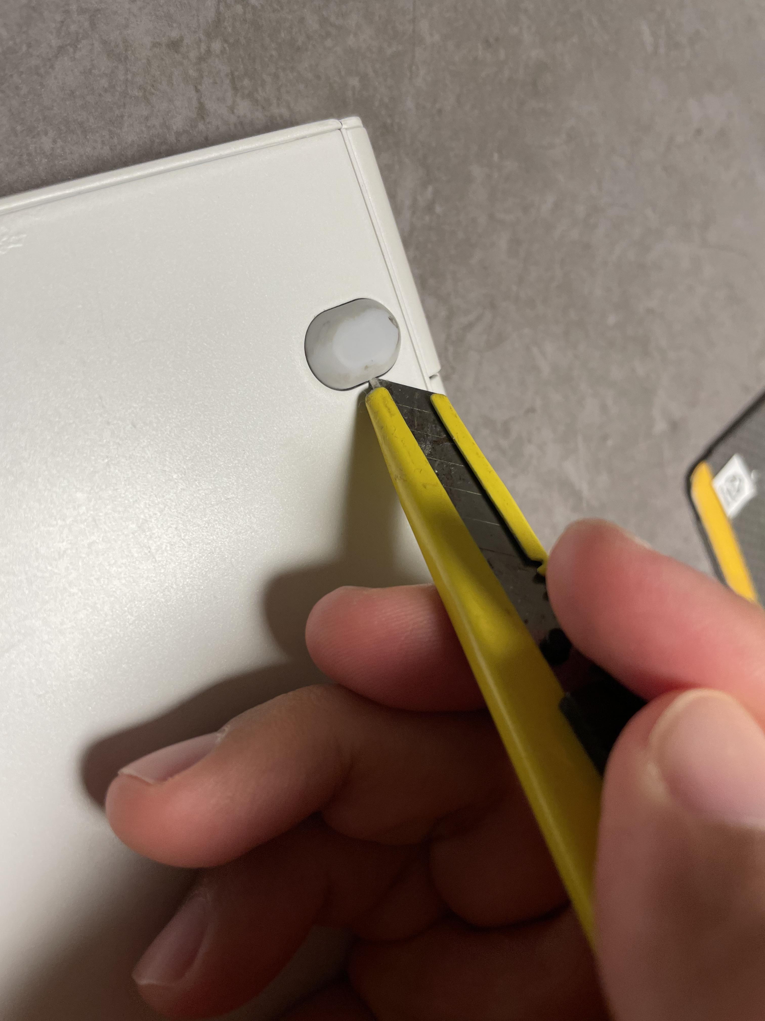 파란색 동그라미는 미끄럼 방지패드를 먼저 분리해야 한다. 칼을 이용해서 잡아당기면 쉽게 빠진다. 따로 잘 모아두자.
