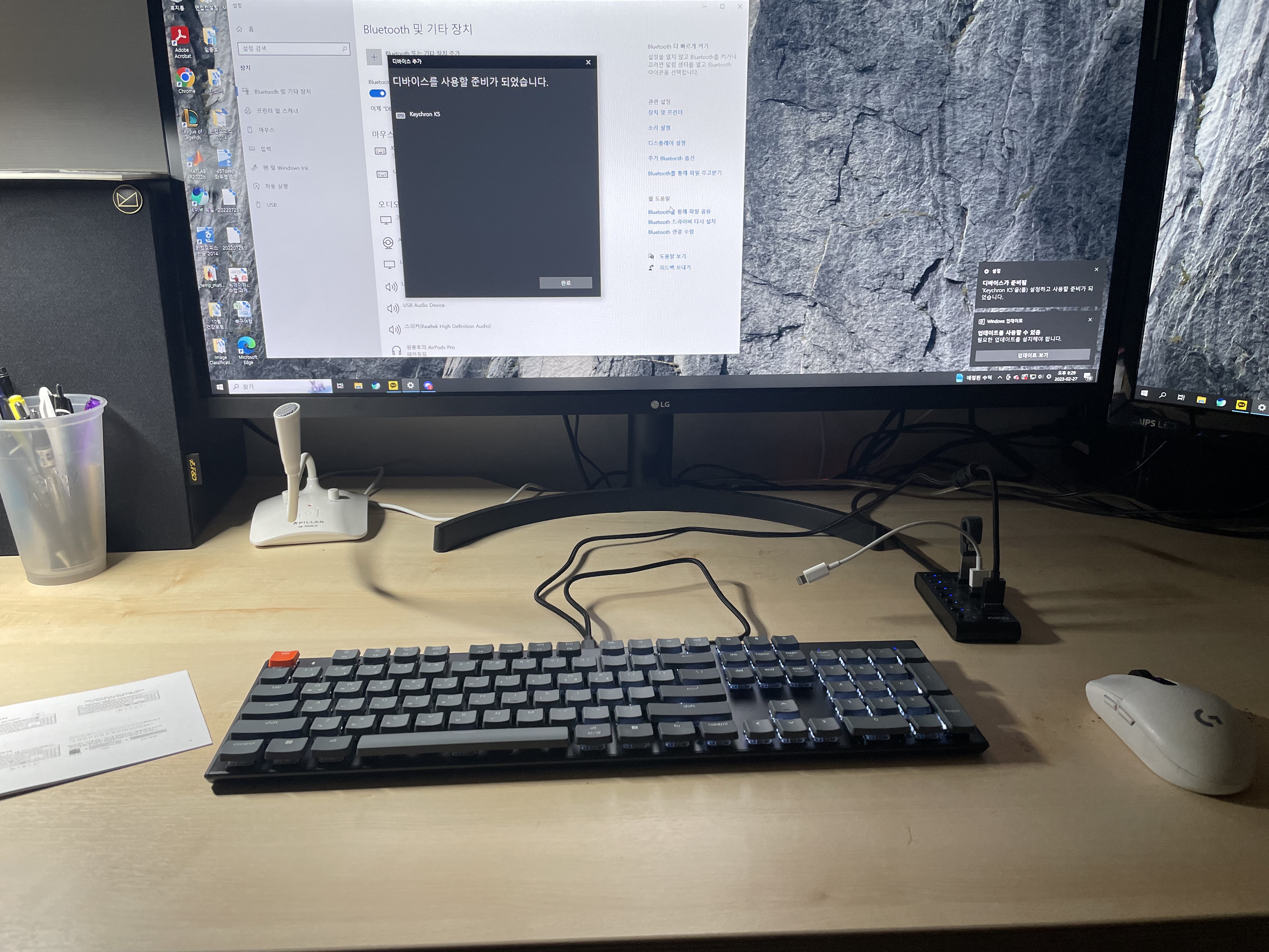 일단 제품 구매를 고민할 때 가장 중요하게 생각했던 것이 풀배열이다. 게임을 잘 안하다보니 텐키리스 제품은 별로 필요가 없었고, 텐키로 숫자를 입력하거나 하는 일이 잦기 때문에 무조건 풀배열 키보드 구매를 고민했다. 그리고 블루투스 기능도 있으면 좋고 없으면 말고처럼 옵션으로만 생각했다.