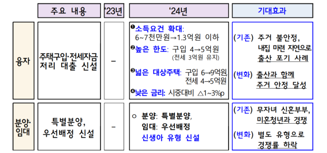 내년에 결혼을 앞두고 있는 예비신랑으로, 24년 출산율 정책이 기대됩니다. 어제 24년도 지원방향과 정책들의 큰 방향이 발표되었습니다. 크게 주거안정, 육아휴직, 양육비용 및 돌봄, 지역아동센터 관련 정책의 변화가 예상됩니다.