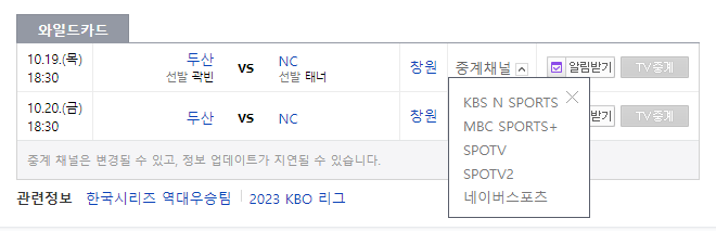 KBO 와일드카드 중계