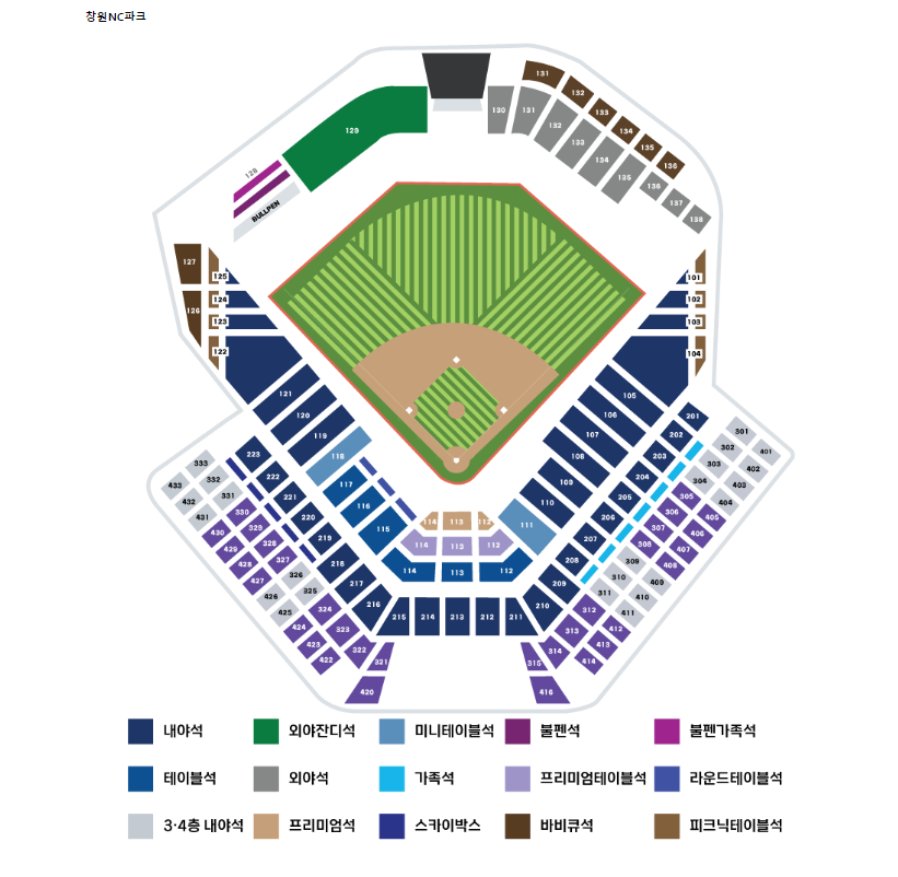 창원NC파크 좌석배치도와 와일드카드전 가격이다. 참고로 창원NC파크의 홈 웅원 좌석은 1루이고, 원정 응원석은 3루이다. 1층 내야석 가격은 3만원이고, 3,4층 내야석은 2만원에 이용이 가능하다. 테이블석의 경우 7만원 정도로 현재 판매되고 있다. 생각했던 것보다 가격이 비싸지 않다.