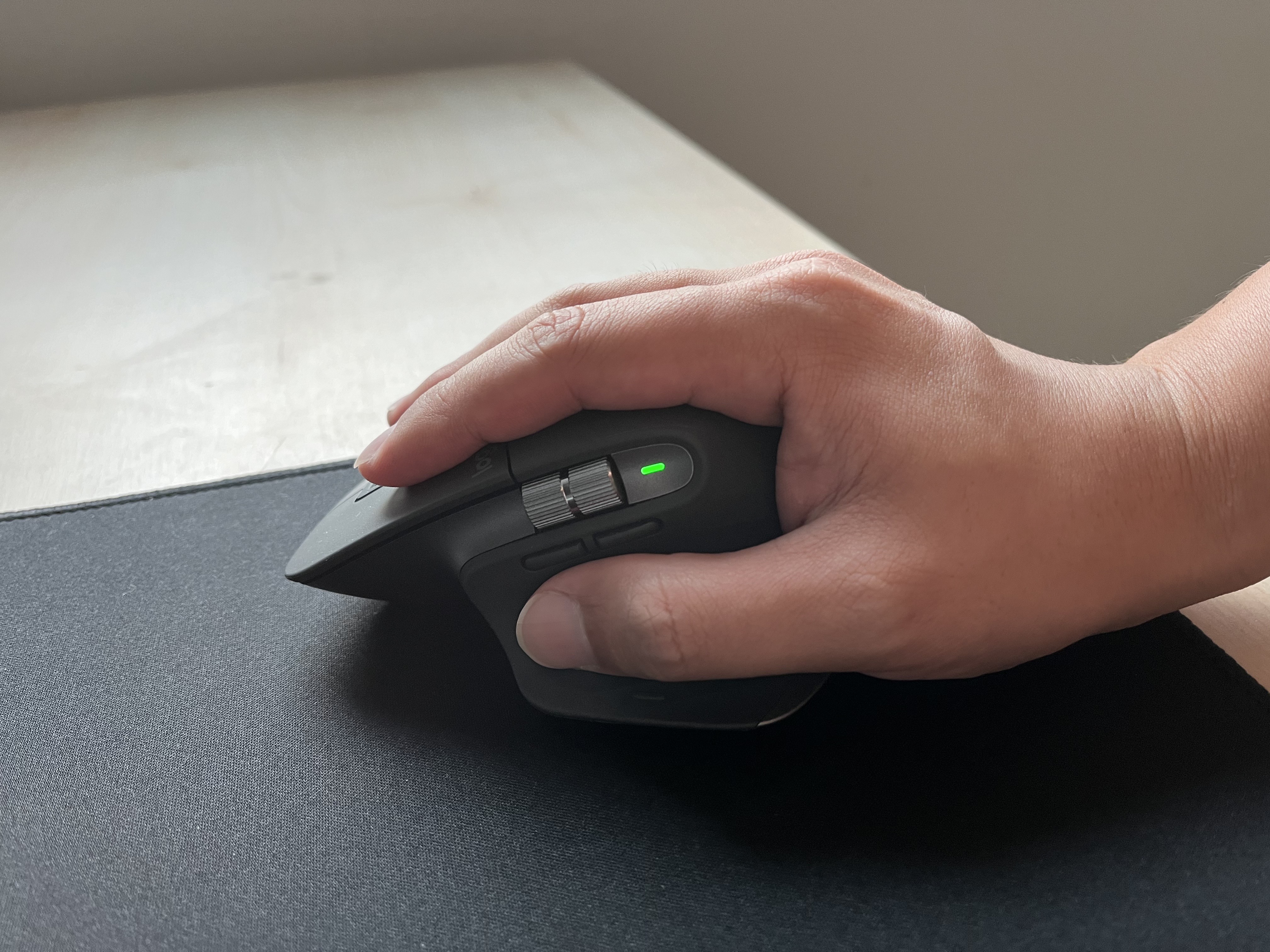그립감은 상당히 좋았습니다. SE버전이 아닌 MX MASTER 3 버전에서 이미 증명된 곡률로 손목에 편안함을 주고 묵직한 느낌을 주었습니다. 다만, SE 버전이 아닌 본 버전에서도 그런지 모르겠지만 측면 휠의 뻑뻑함이 약간 느껴져서 불편했습니다. 뽑기 운인지 모르겠지만 적응해야 하는 부분인 것 같습니다.
