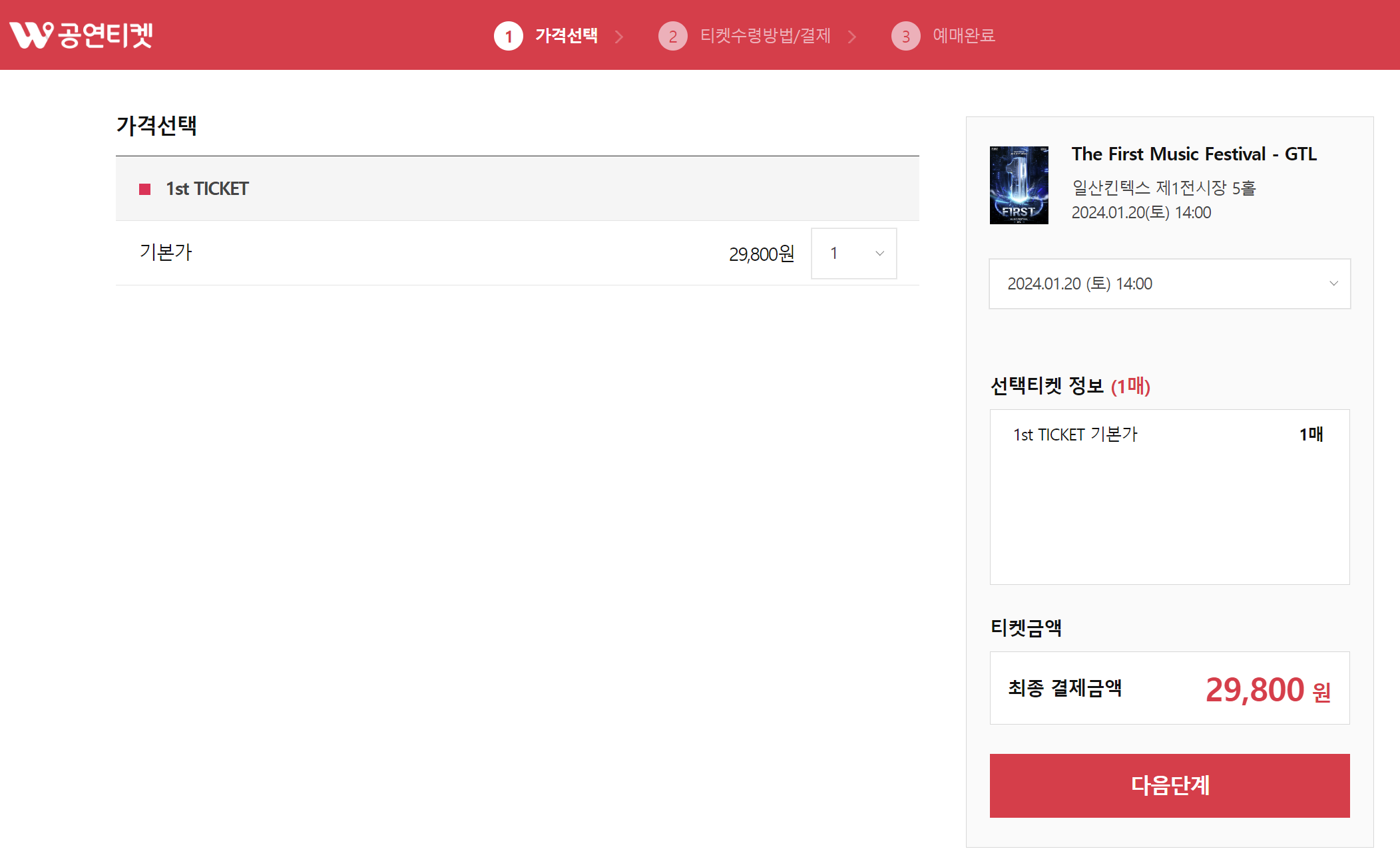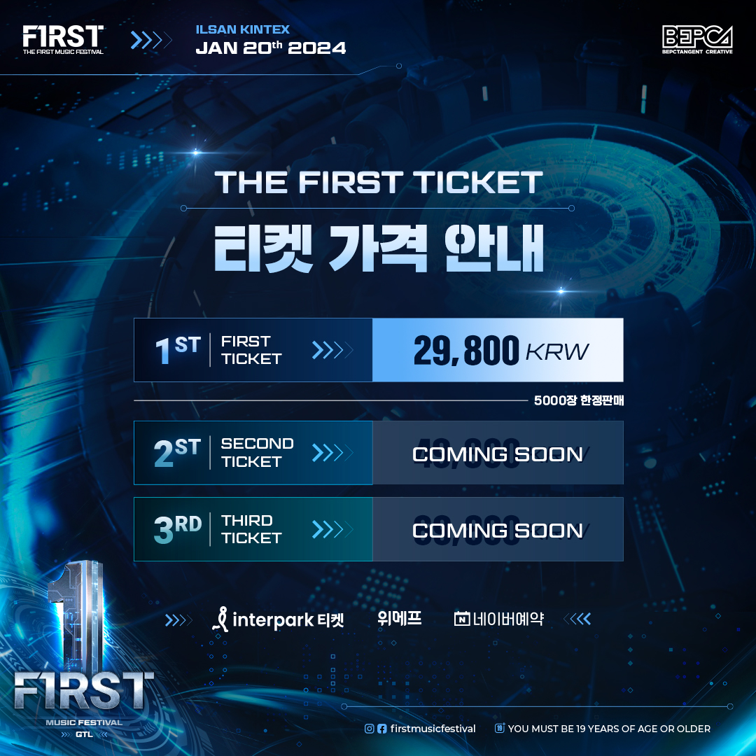 더 퍼스트 뮤직 페스티벌 티켓 가격은 역시나 혜자스러운 29,800원입니다. 울트라뮤직페스티벌, 월디페 티켓 가격에 비하면 진짜 혜자스러운 가격이 아닐 수 없습니다. 12월 11일 4000장 분량의 티켓 예매가 오픈되었음에도 불구하고 현재까지도 아직 29,800에 예매가 가능합니다.